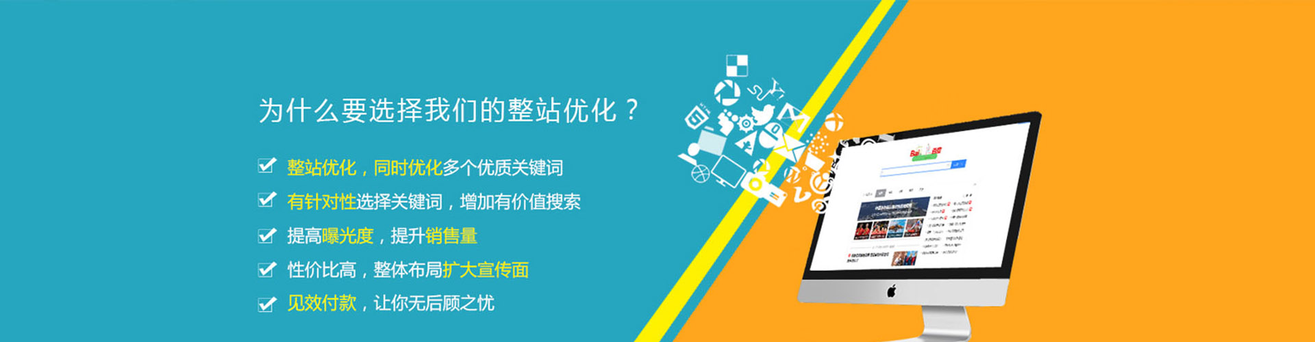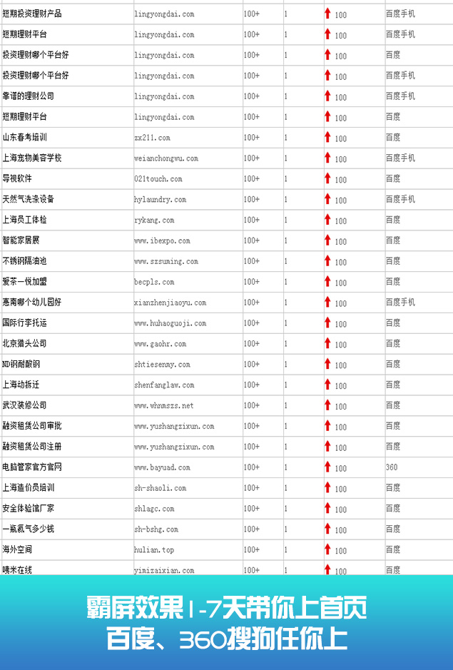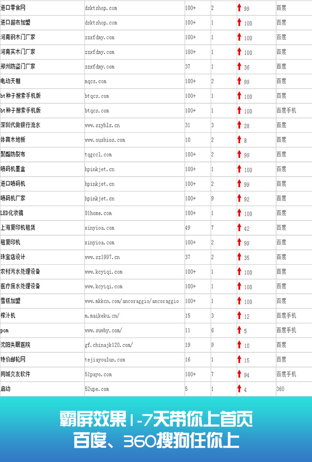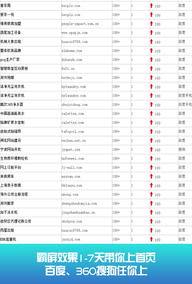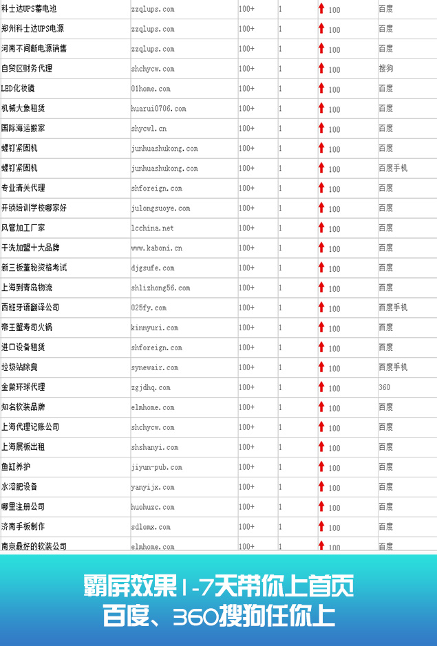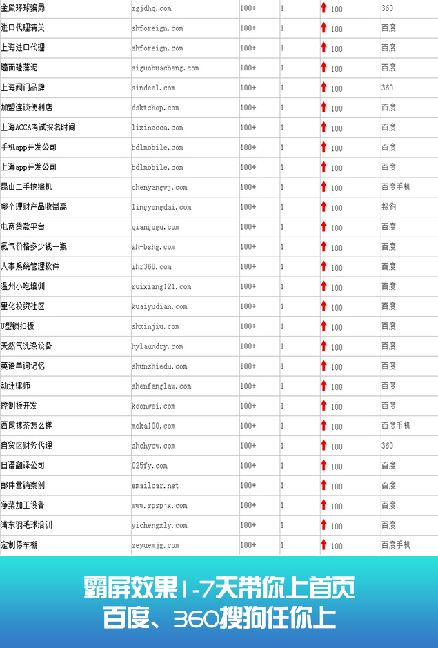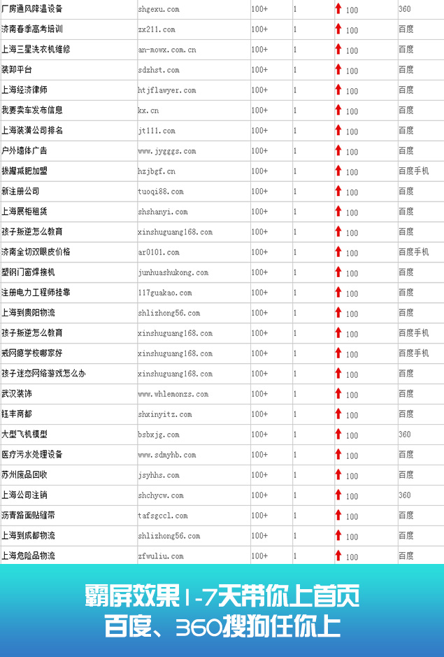 无论你关键词是在20名内、30名内、还是50名内。我们都可以在最短时间优化至搜索引擎的首页。