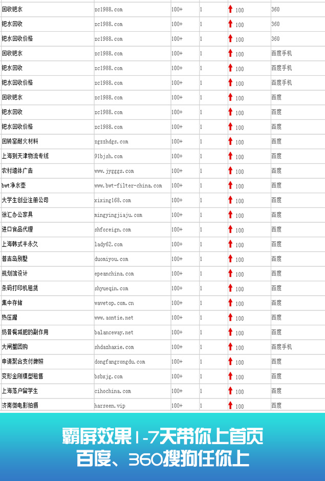 关键词排名推广合作的搜索引擎:百度、百度移动端、360搜索、360移动端、搜狗、搜狗移动端、神马